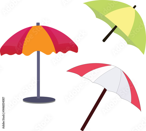 White umbrella mockup set, vector illustration isolated on white background. Realistic waterproof folded and opened parasols in various positions.