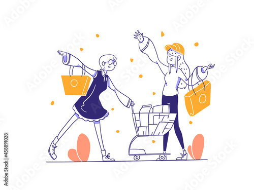 Pressing, fermentation the third step of wine making process, vector illustration. Fresh grape juice flowing into wood barrel. Wine production concept for web banner, website page etc.