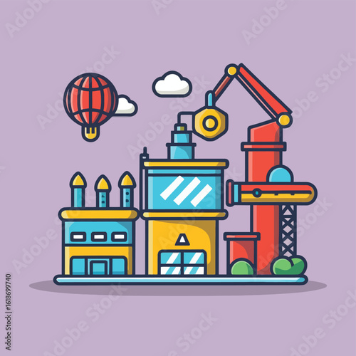Wine production process concept vector illustration. Winery factory, people harvest grape and make wine. Winemaking technology.