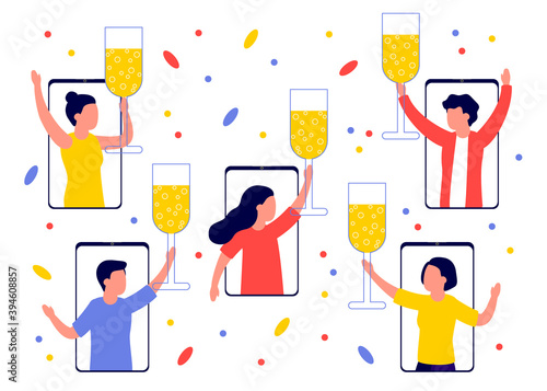 Wine scene with wineglass in human hands composition vector illustration. Alcoholic beverage drinking and holiday party celebrating design