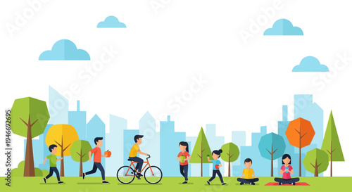 Winter activities, christmas time concept vector illustration in flat style. Snowy street, city life. People playing snowballs, making snowman, buying christmas tree design elements.