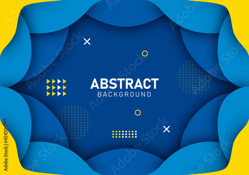 Winter banner season paper cut 3d vector design. Trees and snowflakes on blue background in art craft style. Christmas illustration. Holiday landscape for new year greeting card