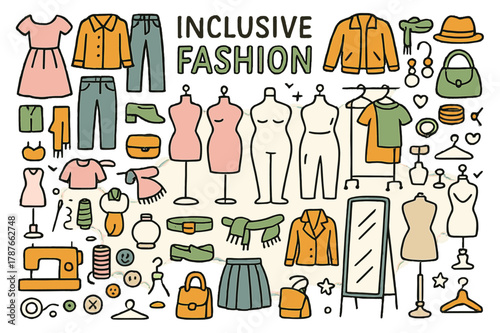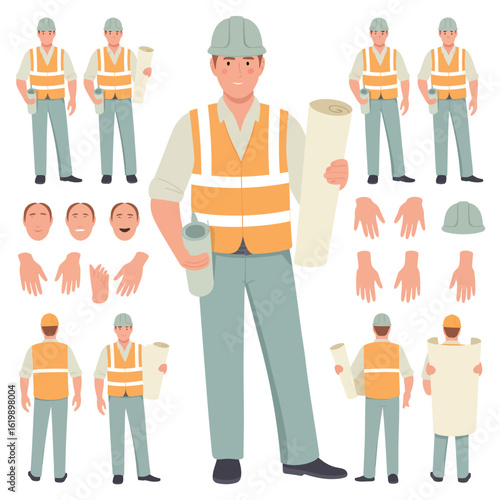 Winter hiking gear, flat vector isolated illustration. Mountain travel, climbing and winter trekking equipment. Warm clothes, backpack, compass, camping tent, ski, sleeping bag, map, hiking boots etc.