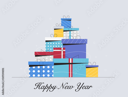 White open gift boxes with Winter sale words, golden serpentine and confetti explosion, vector isolated illustration. Seasonal discounts and sales concept for banner, poster.