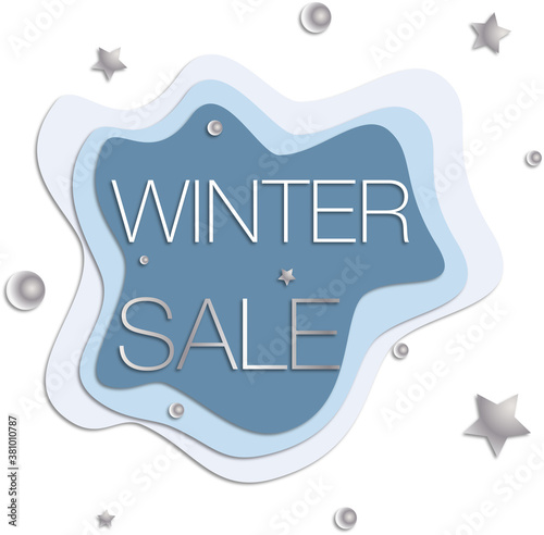 Winter creative hand lettering typography, vector illustration in paper art modern craft style. Winter season composition with paper cut trees, christmas tree balls, snowflake and hare silhouettes.