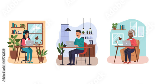 Winter tale. People preparing for Christmas holidays celebration, expecting magic things, flat vector illustration. They cleaning home, preparing gifts, cooking gingerbread cookies, playing snowballs.