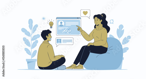 Man and woman communicating texting messages using laptop computer, mobile phone devices and wifi access. Free public WiFi hotspot zone, wireless connection concept for web banner, website page etc.