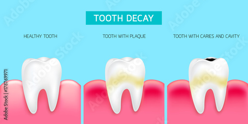 Wisdom teeth problems poster design template, vector realistic illustration. Impacted wisdom tooth that causes damage to other tooth. Dentistry, dental surgery concept.