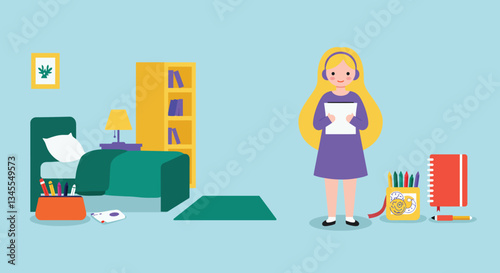 Vector illustration of witness female waiting to provide testimonial evidence in court. Flat style design.