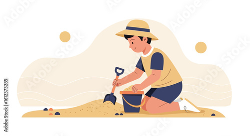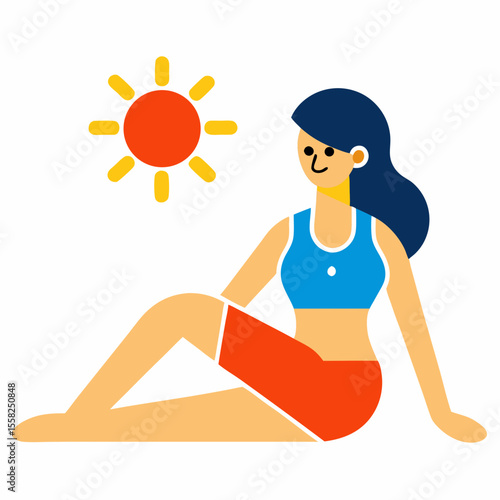 Young woman wearing swimsuit ad sun hat applying sunscreen, flat vector illustration. Sunblock, sun protection cream. Summer beach skin care routine.