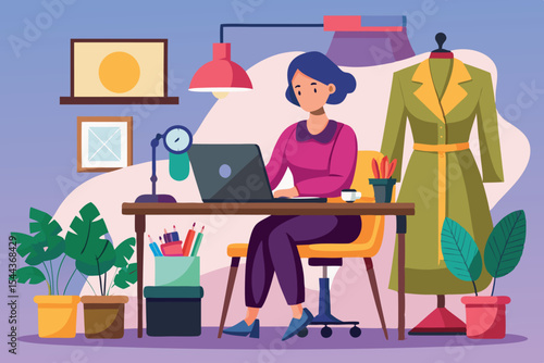 Woman buying dress in modern fashion boutique. Fashion store vector illustration set. Design clothes shop interior. Showroom with female apparel.