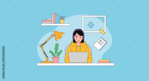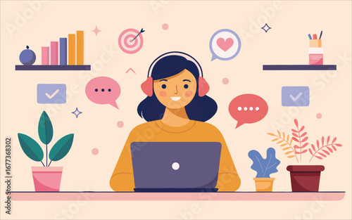 Woman celebrates her birthday online. Woman giving present to a man with closed eyes in a park. Birthday gift concept illustration. Vector web site design template.