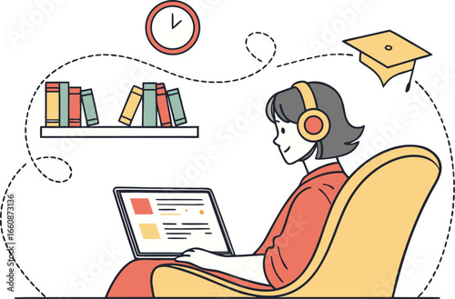 Woman character reading book and petting cat sitting on floor vector icon isolated on white background.