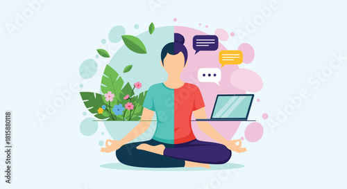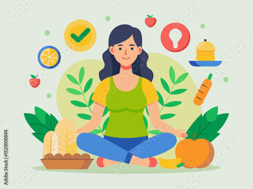 Woman check her weight on a scale and write down results. Woman talk by phone while on picnic in a park. Concept illustration. Vector web site design template.