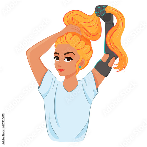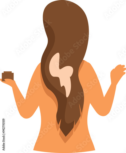Woman choosing haircare cosmetics vector icon isolated on white background