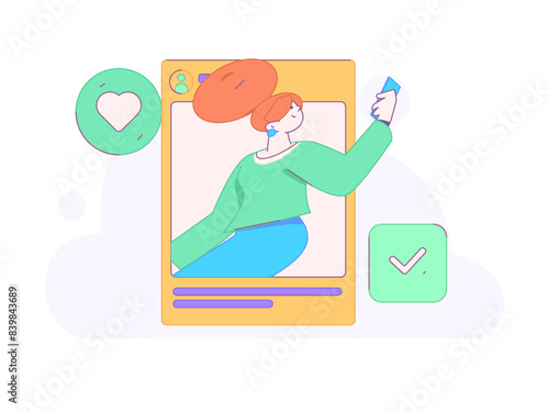 Woman clean home and remove dust. Man check todo list. Concept illustration. Vector web site design template.