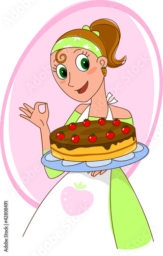 Woman cooking pizza at home. Vector illustration in retro comic pop art style.