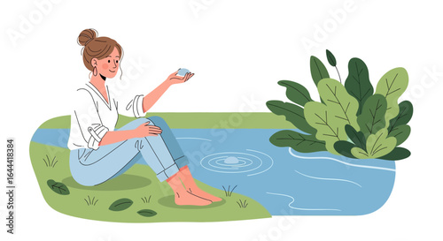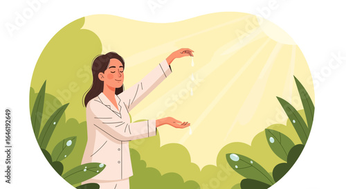 Young woman farmer, agricultural worker female character gathering corn harvest in bowl isolated on white background. Farm life and harvesting vector illustration