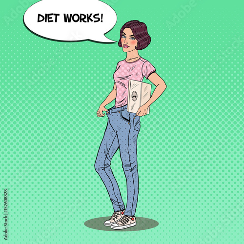 Woman hold gift box. Thank you speech bubble. Vector illustration in retro comic pop art style. Beautiful girl with christmas or birthday gift.