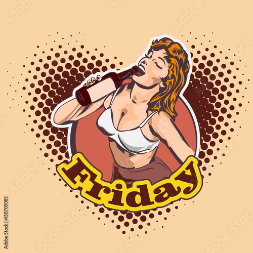 Woman hold gift box. Thank you speech bubble. Vector illustration in retro comic pop art style. Beautiful girl with christmas or birthday gift.