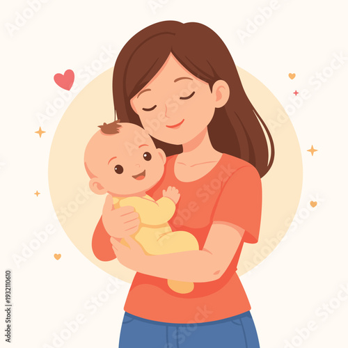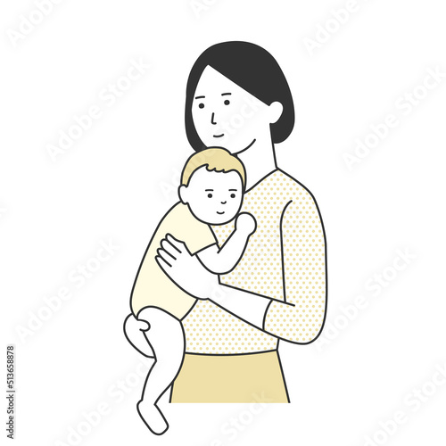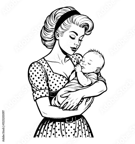 Woman holding a child vector illustration in retro pop art style. Mother with her kid comic design poster.