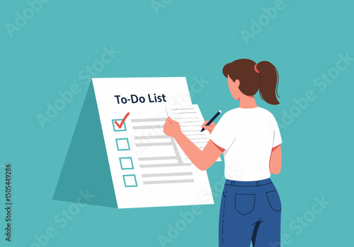 Vector woman holding cat icon. Happy girl standing with pet in hand isolated on white background