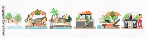 Woman home skin care procedures, flat vector illustration. Girls taking bath with aroma candles, applying face mask, body cream, buying beauty and cosmetic products. Hygiene, daily skin care routine.