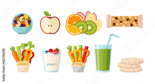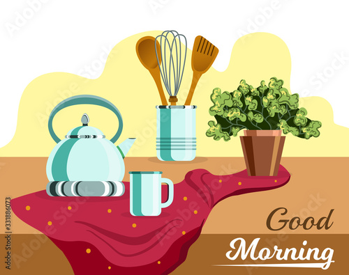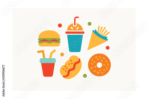 Woman in depression and stress eat fast food at home. Breakfast, french fries, coffee. Concept illustration. Vector web site design template.