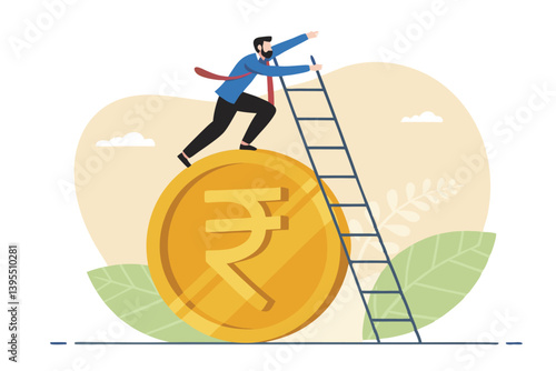 Woman investor holding dollar gold coin vector icon isolated on white background. People miner character. Business and financial growth