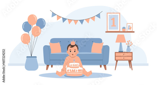 Woman ironing newborn baby clothes. Baby care concept illustration. Vector web site design template. Diaper bag with milk bottles.