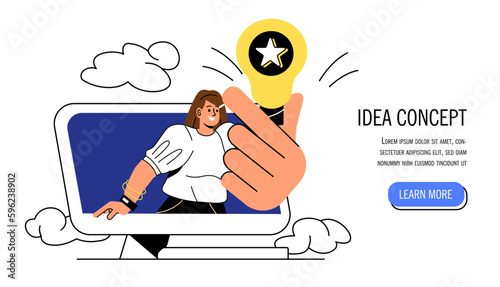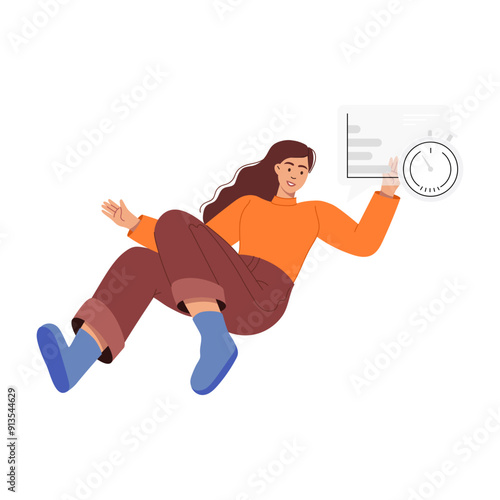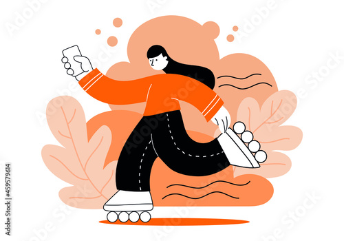 Woman listening radio podcast using mobile phone vector icon isolated background.