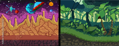 Young woman looking at starry sky, planets, astronaut in outer space through telescope, flat vector illustration. Astronomy science. Space poster, banner, flyer design template.
