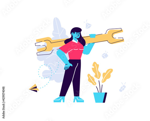 Woman looking through spyglass vector icon isolated on white background