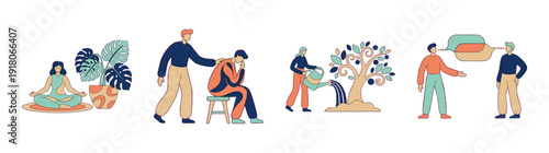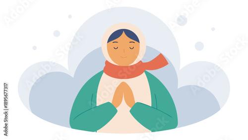 Young woman meditating on nature vector illustration. Cartoon girl doing stress relief exercise, calming mind, breathing for harmony. Concept of yoga, meditation, relax, recreation, healthy lifestyle