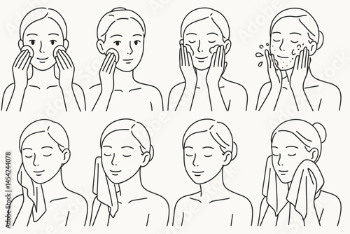 Female character pressing acupressure points on her neck, elbow, head, breast to relieve pain and muscle tension, vector illustration. Acupressure massage therapy, traditional chinese medicine.