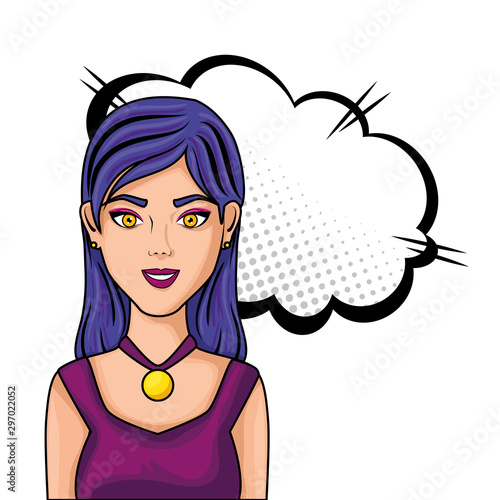 Woman smiles and shows OK hand sign with speech bubble. Vector illustration in retro comic pop art style. Fitness girl in good shape with bottle of water.