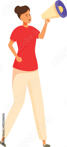 Woman speak in megaphone vector. Female person standing with loudspeaker icon. Young business lady with bullhorn isolated on white background