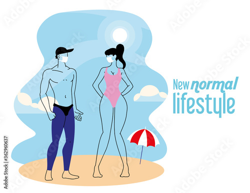 Young woman in wetsuit swim on stand up paddle board. SUP surfing. Active lifestyle. Vector illustration in flat design