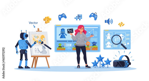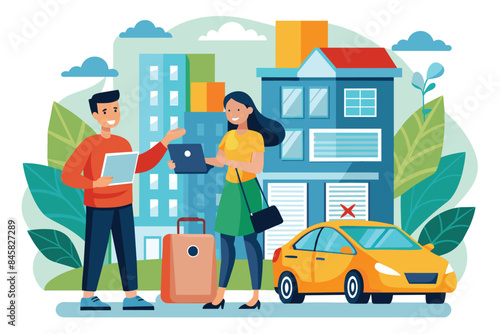 Woman traveler character with suitcase bag choosing relocation destination. Immigration scene vector illustration. Planet with geolocation pins, money cash, place of destination and new home