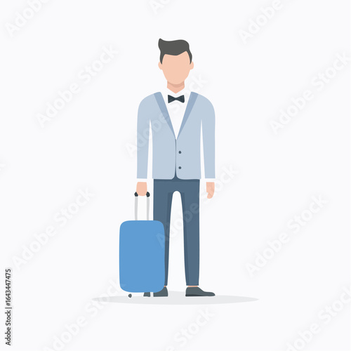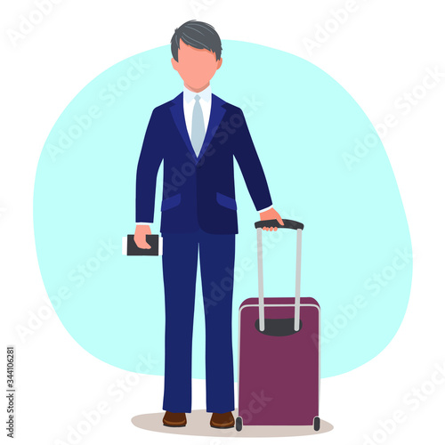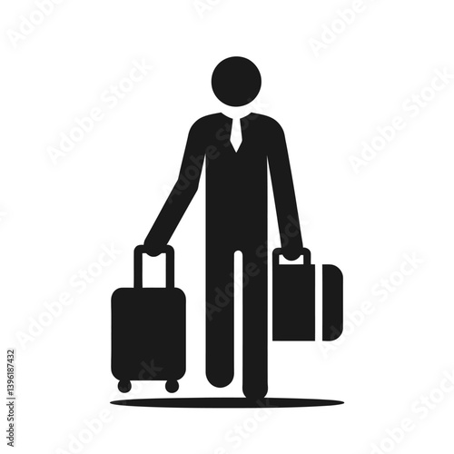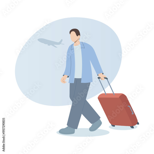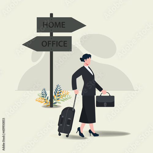 Woman traveler with luggage bag back view vector icon isolated on white background. Viral pandemic concept.