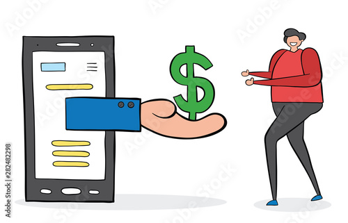 Woman volunteer donating money vector. Charity and donation icon. Female character carrying gold dollar coin isolated on white background