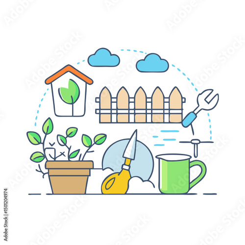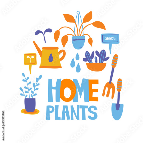 Woman watering plants in home garden. House plants concept illustration. Vector web site design template. Potted flowers, houseplants, florist hobby.