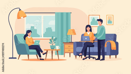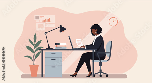 Vector woman web designer or artist working on tablet in room. Professional illustrator big easel screen at workplace illustration. Hobby and digital art