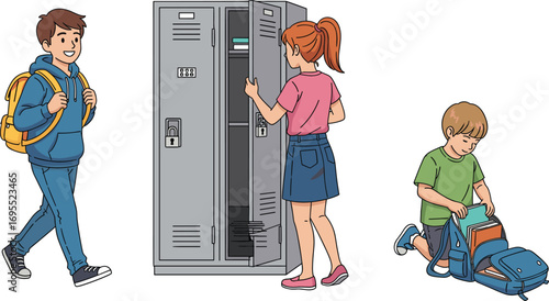 Young girl with coffee cup buying coffee again from vending machine, flat vector illustration. Caffeine abuse and addiction. Unhealthy lifestyle. Bad habits.