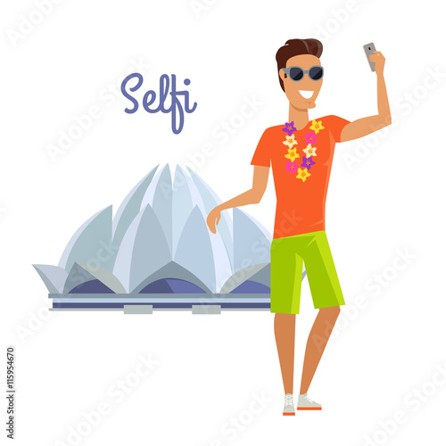 Vector woman with handbag standing isolated on white background. People portrait icon
