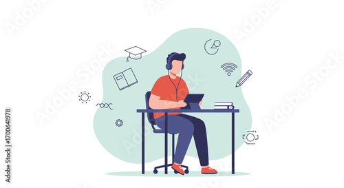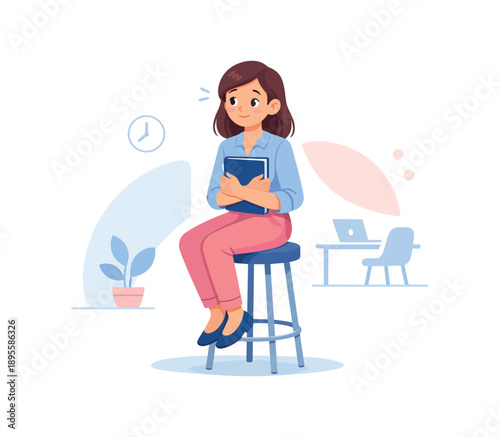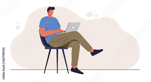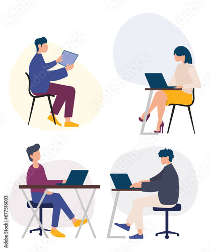 Woman working on laptop sitting at cafe table vector illustration. Freelance business people informal workplace. Remote job, distance work, online occupation
