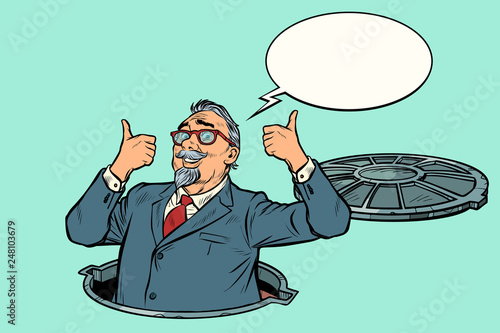 Woman work on laptop retro comic pop art vector illustration. Businesswoman in office. Job is done concept.