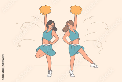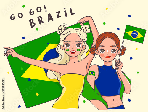 Vector illustration of women with ice cream cones. Beautiful girls in bathing suits. Flat style design.