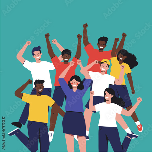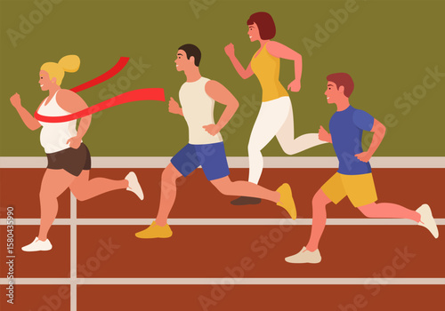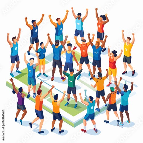 Women's lacrosse team celebrating victory, vector illustration. Female lacrosse game players on a field.