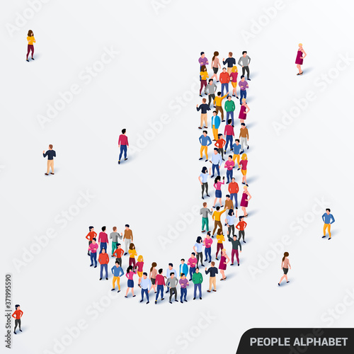 Word No made of many people, large crowd shape. Group of people stay in No sign formation. Social activity, collective action and public engagement. Vector illustration in isometric style.